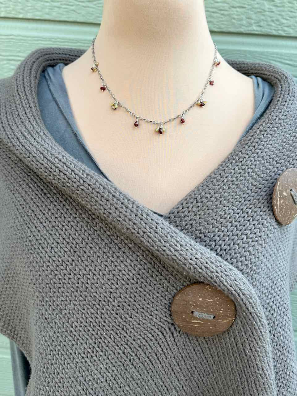 This stunning Red Fringe Necklace features faceted garnets and opals for an exquisite look. The stones shimmer with a fire and flash that will make any outfit stand out. Delicate and eye-catching, this necklace is perfect for a special occasion or everyday wear.