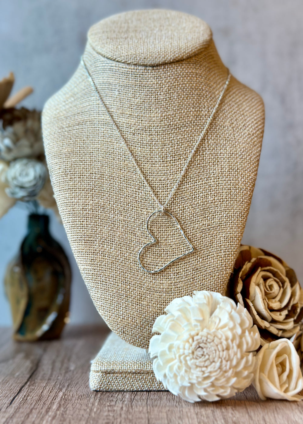 A delicately textured sterling heart swings from a lovely sterling chain.